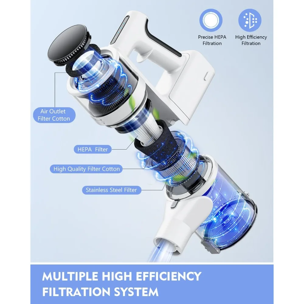 - Powerful Suction And Versatile Design: 🤩 Unleash the power of cleaning! Cordless vacuum cleaner features an 80,000PRM system and Multi-layer filtration system that delivers superior suction power to quickly remove dust and debris, while supporting 2 adjustable modes to meet different cleaning needs.